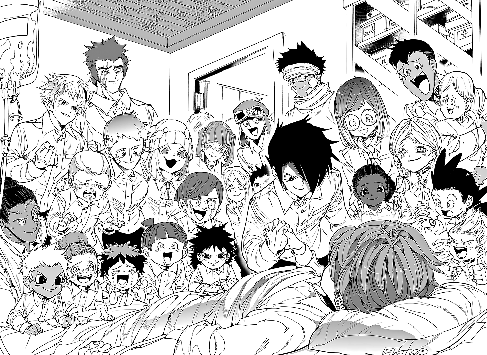Emma, Norman et Ray, tous orphelins, ont été placés dans un établissement spécialisé lorsqu’ils étaient tout jeunes. Bien que leur liberté soit limitée et que les règles soient parfois un peu strictes, les enfants mènent une vie heureuse à l’orphelinat de Grace Field House. Ils s’épanouissent sous l’attention d’une femme qu’ils nomment « Maman » et qui s’occupe d’eux et leur offre tout l’amour qu’une mère pourrait offrir à ses enfants.